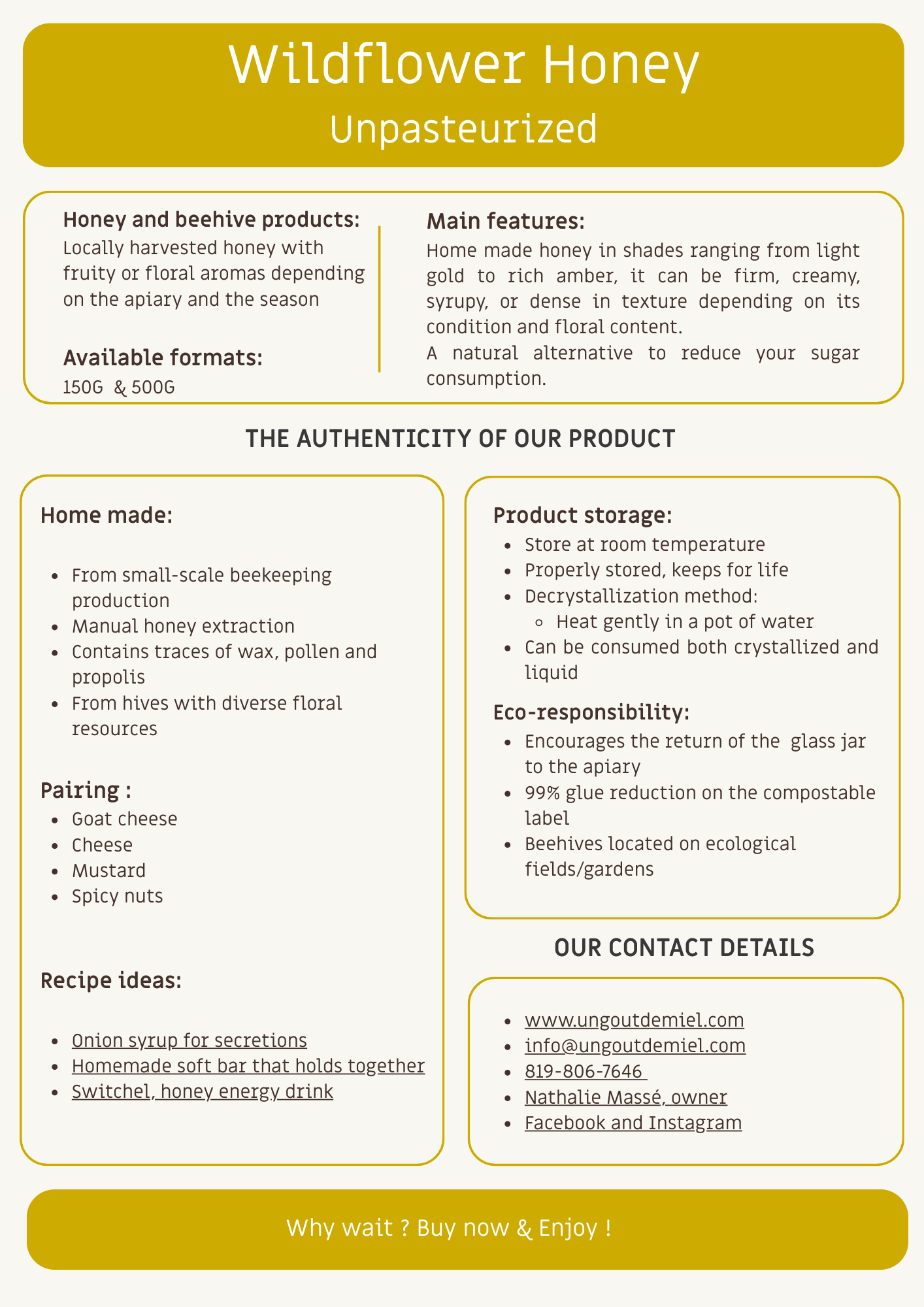 Ingrédients : Miel de fleurs sauvages non pasteurisé