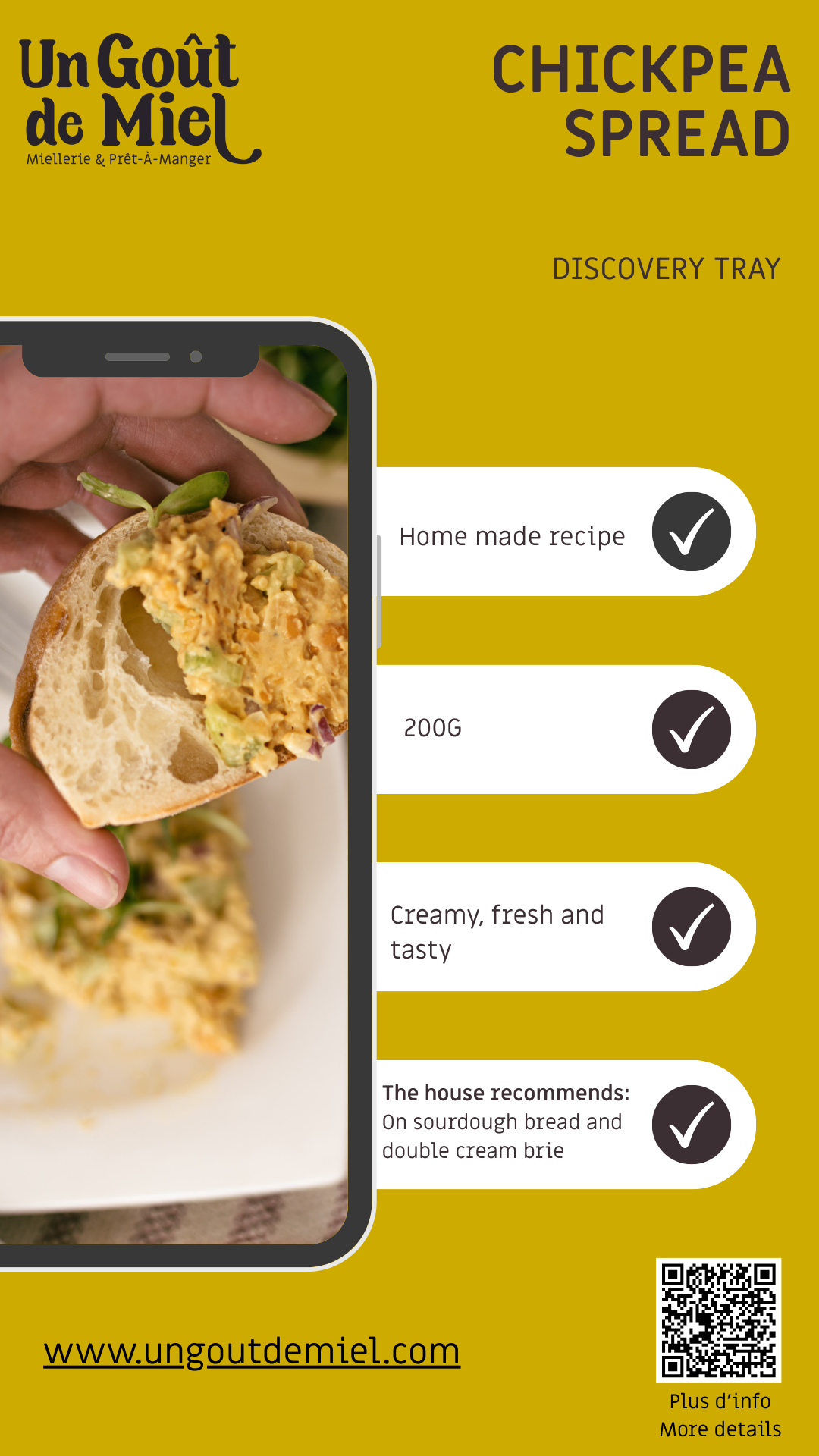 Notre tartinade de pois chiches est devenue célèbre ! À savourer avec des biscuits, des craquelins ou en garniture de sandwich.